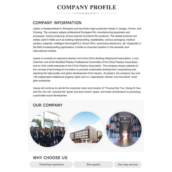 3. Q: What is the width of UPASS Metalized PET Film?A: The width of UPASS Metalized PET Film ranges from 100mm to 2100mm, depending on the specific model number.